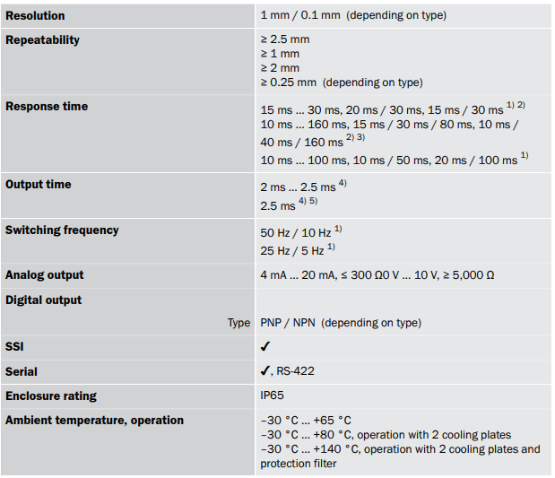 The Dx50 is a common distance sensor platform, offering multiple performance levels. With measurement ranges of up to 10 m or 20 m on objects or even up to 50 m when measuring on reflector, the Dx50 is suitable for many different applications. Based on a switching, analog or serial interface being available the Dx50 can easily be integrated in any application environment. Also the intuitive operating concept and a visible red laser allow a fast installation of the sensors. Thanks to the innovative HDDM technology the Dx50 provides excellent reliability, immunity to ambient light and precision when being in use. Offering an extremely good price/performance ratio the Dx50 is the right solution in many cases.